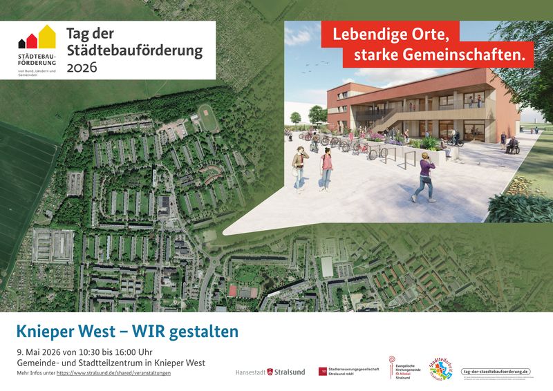 Am 9. Mai 2026 lädt die Hansestadt Stralsund zum bundesweiten Tag der Städtebauförderung in das neue Gemeinde- und Stadtteilzentrum in Knieper West ein.