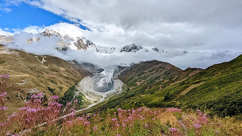 Die Landschaften reichen von den grandiose Bergwelten des Großen Kaukasus über sanft hügelige Weinberge und weite Steppenregionen bis zur mediterran anmutenden Schwarzmeerküste. In der quirligen Hauptstadt Tiflis treffen sich Orient und Okzident. Auch im Alltag spielt die christliche Religion eine große Rolle. Mmindestens genauso wichtig ist die Pflege der kulturellen Traditionen, der Gesänge und Tänze, der einzigartigen Schrift und der Sprache. Auch Reisende kommen in den sprichwörtlichen Genuss der legendär schmackhaften Küche: es wird gern und viel gefeiert, am liebsten mit Gästen - sie sind ein Geschenk des Himmels, wie ein georgisches Sprichwort sagt.