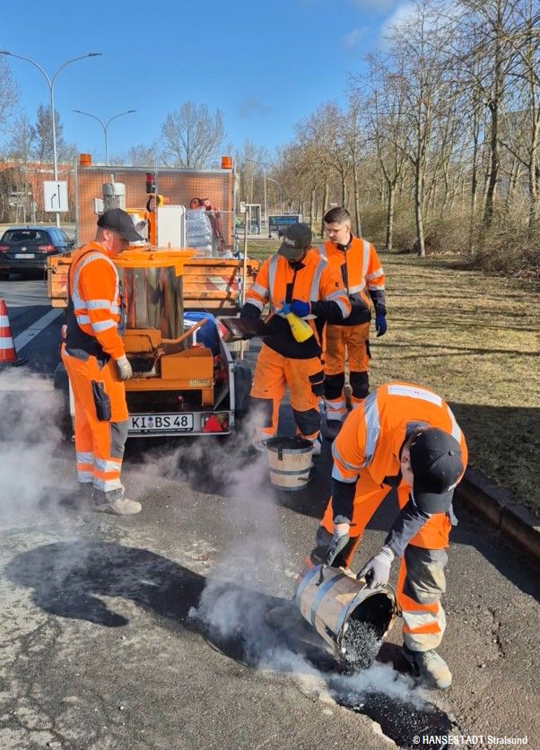 Von Dienstag nach Ostern bis einschließlich Donnerstag konzentrieren sich die Arbeiten auf die Beseitigung erheblicher Fahrbahnschäden am Heinrich-Heine-Ring. Im Anschluss erfolgt die Verlagerung der Maßnahmen in den Grünhufer Bogen. Ein besonderer Schwerpunkt liegt hierbei auf der Instandsetzung des Teilstückes zwischen der Ost- und Westzufahrten zum STRELAPARK. In diesem Zusammenhang werden ebenfalls mittlere Flächensanierungen in der Barther Straße und im Bereich des Grünhufer Bogens durchgeführt.