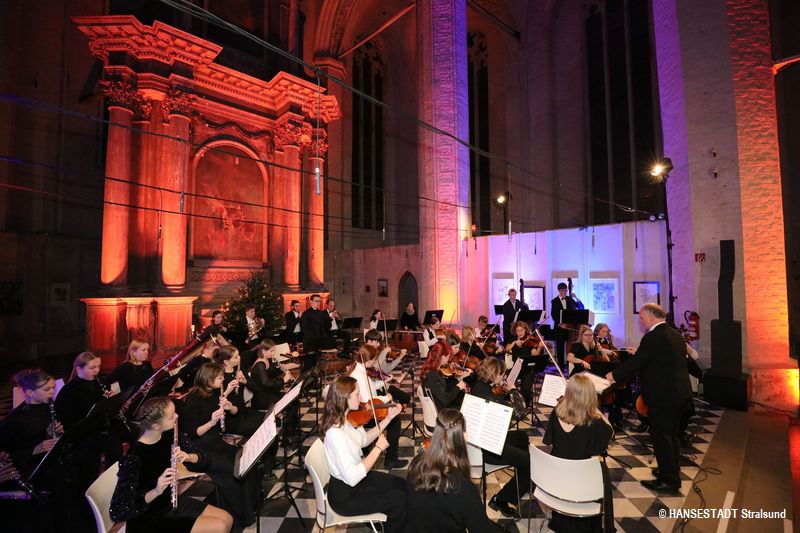 Vor dem 1. Adventswochenende lädt die Musikschule der Hansestadt Stralsund wieder zu ihren beliebten Weihnachtskonzerten ein. Die stimmungsvollen Konzerte finden am Freitag, den 28.11.2025, 16.30 Uhr und 19.00 Uhr in der festlich illuminierten Kulturkirche St. Jakobi statt.
