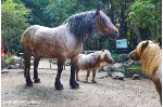 In friedlicher Eintracht stehen das kleine Mini-Shetty Piff und die imposante Mecklenburger Kaltblutstute Emely in ihrem Gehege im Zoo Stralsund beieinander. Das ist nicht ungewöhnlich, denn auch wenn sie unterschiedlich in Größe und Form sind, einen sie doch dieselben Vorfahren. Wir Menschen haben sie durch Jahrtausende andauernde Zuchtbemühungen in Form, Größe und Charakter so verändert, dass sie unseren Anforderungen genügen. Während Piffs Vorfahren in niedrigen engen Bergstollen das gewonnene Erz transportierten, dienten Kaltblüter dem Landwirt zum Ziehen schwerer Ackergeräte oder Transportkarren. Doch die modernen Zeiten führten dazu, dass beide Rassen in ihrer ursprünglichen Funktion nicht mehr benötigt werden. Getreu dem Motto vom "Bauernhof in die Wildnis" bietet der Zoo Stralsund beiden Rassen ein Heim, um an ihre Historie zu erinnern.